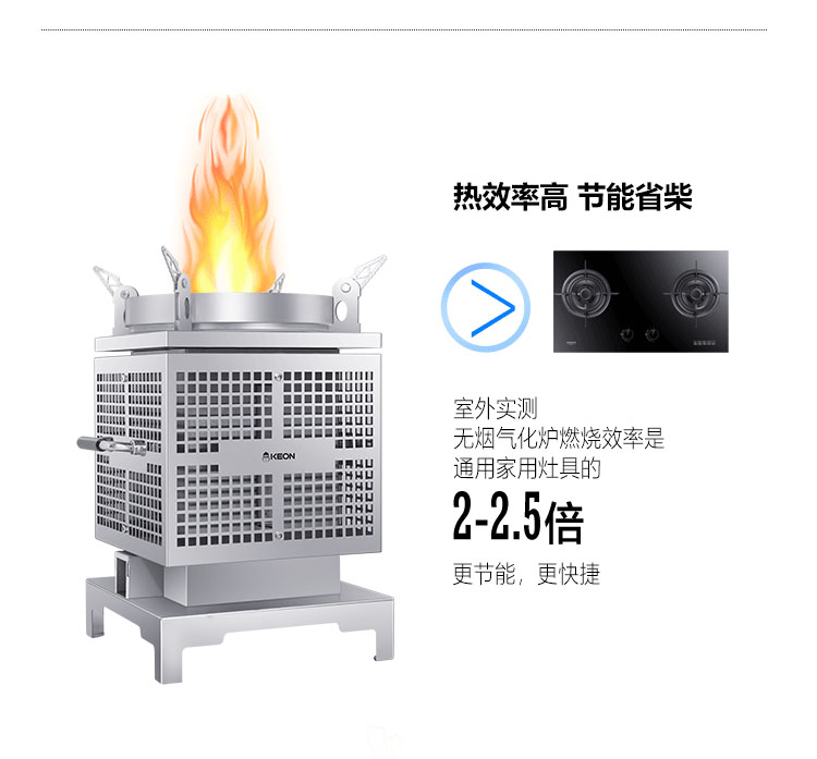 • 3D繞流爐膛,科學供氧,猛火無煙
