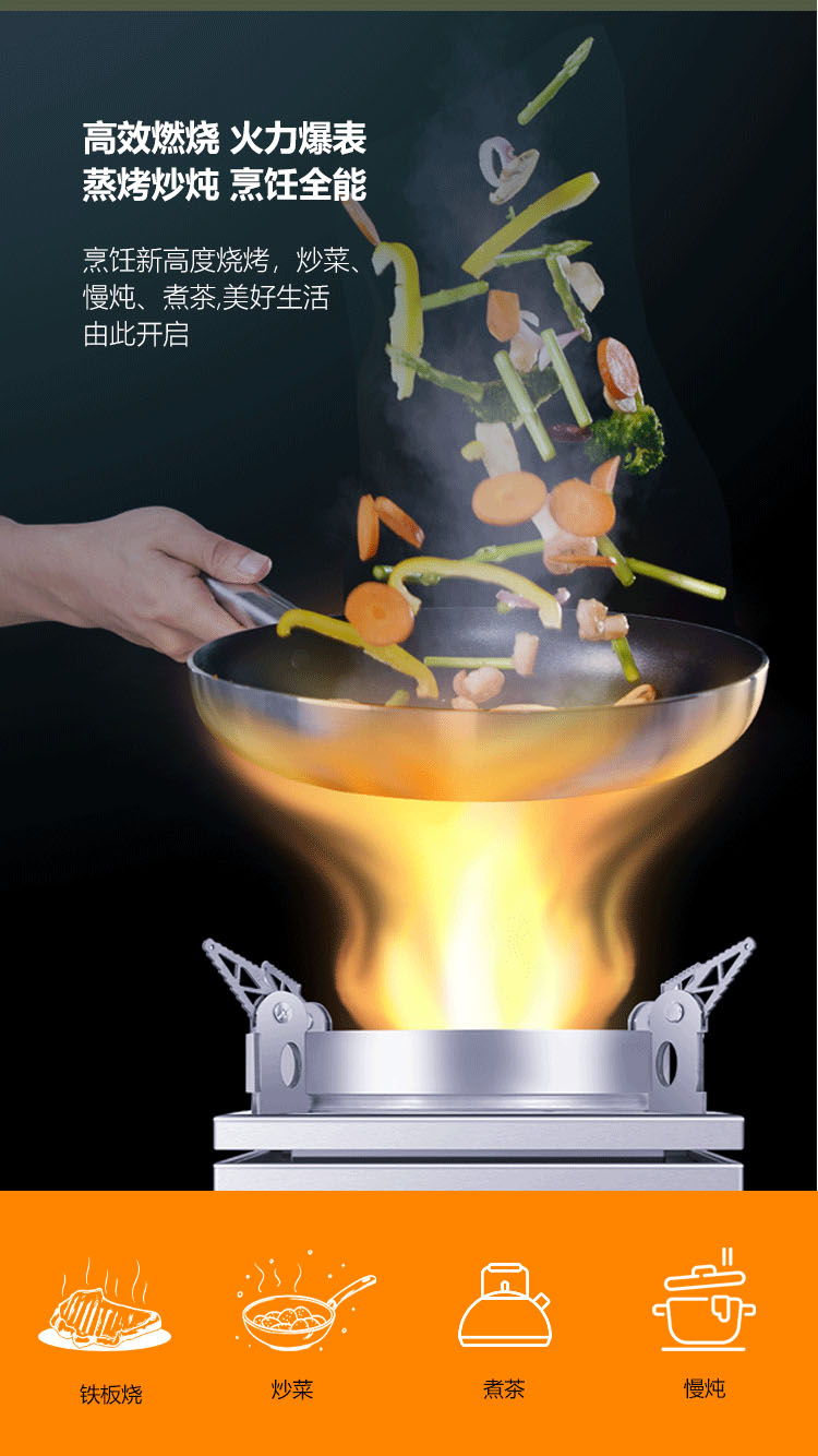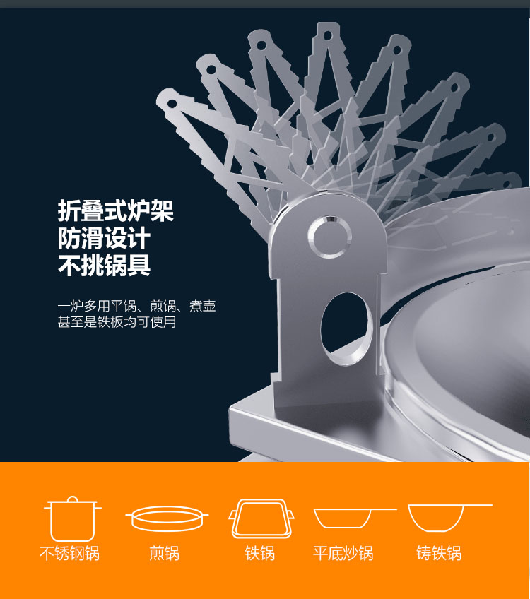• 飛檐式可調節防滑鍋架,適配各種鍋具