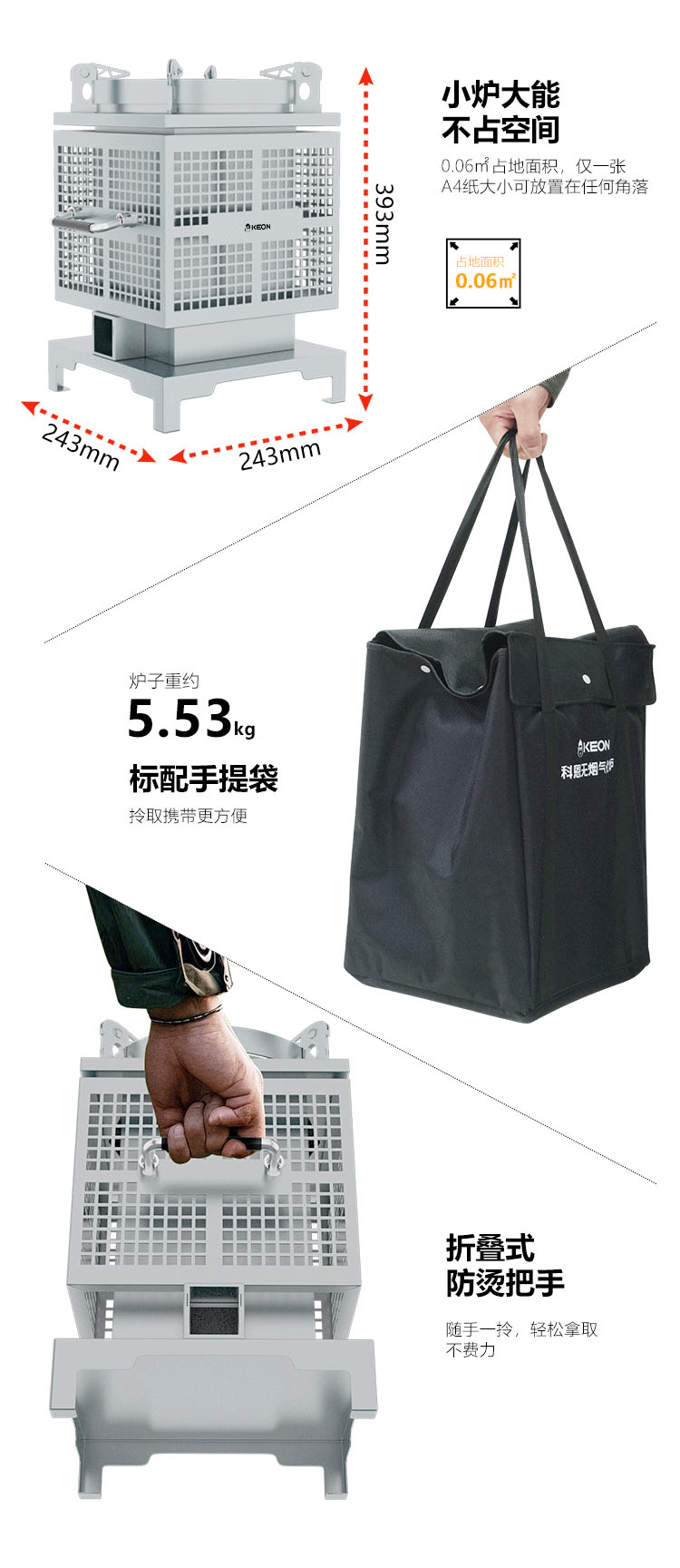 • 折疊式防燙把手,釋放空間,移動方便