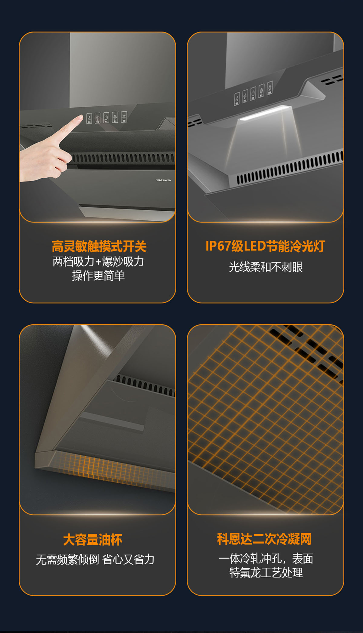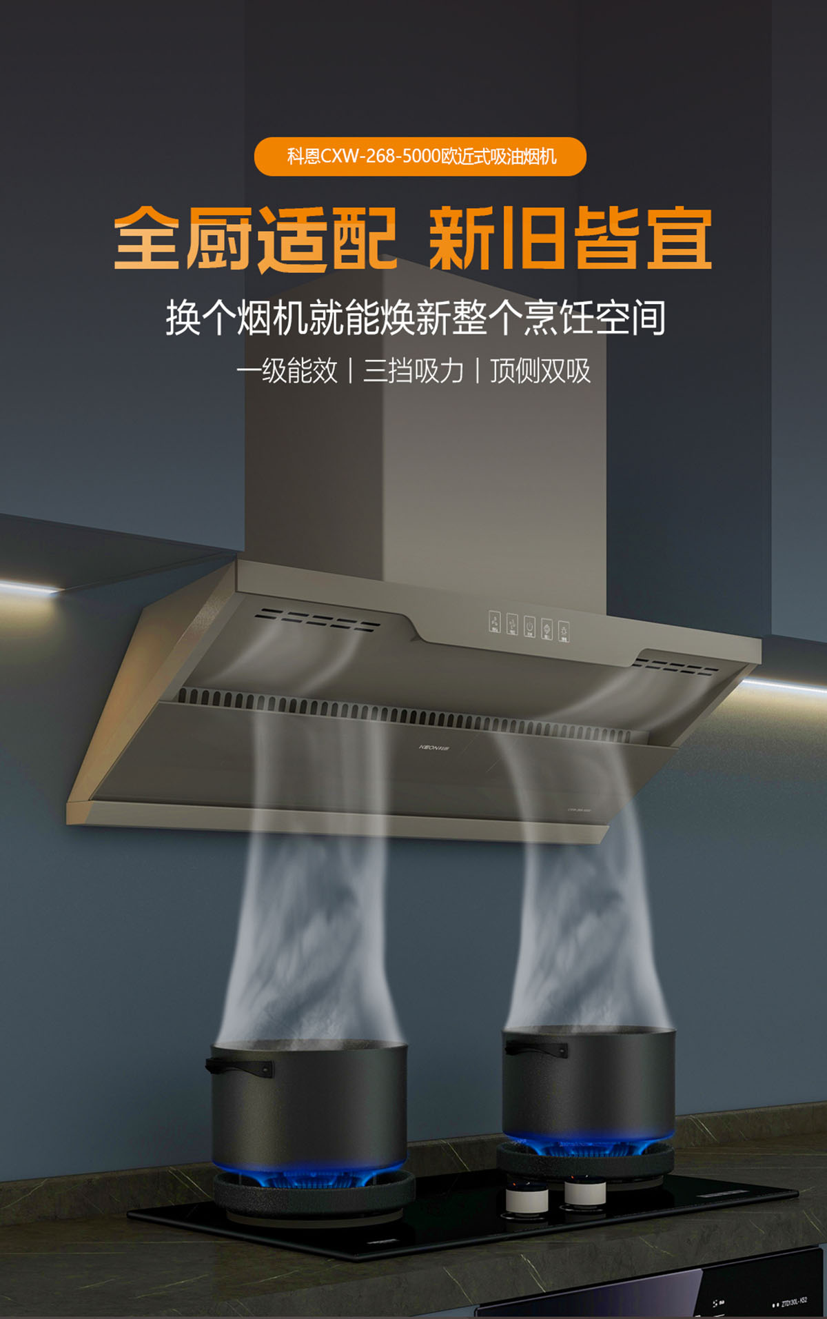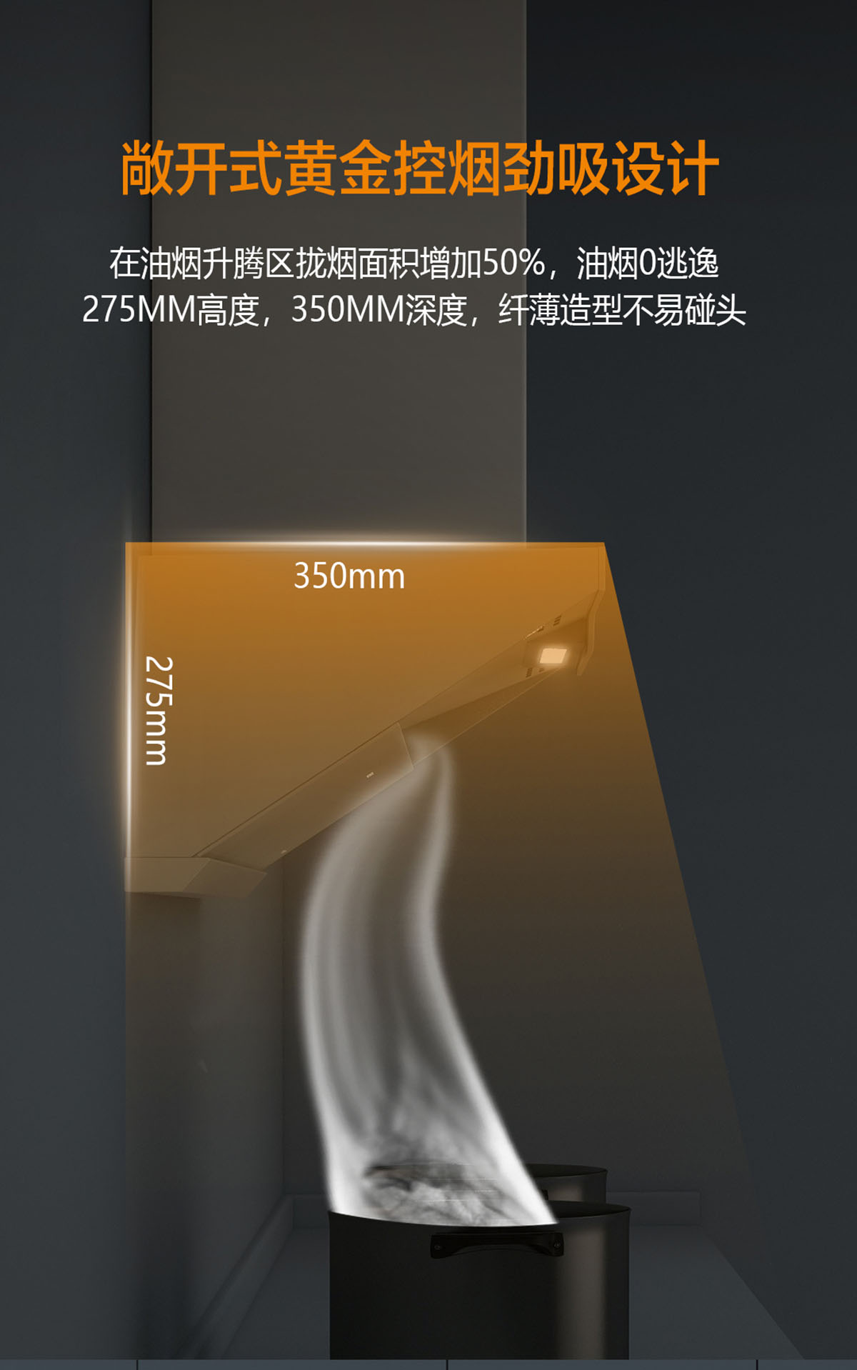 - 黃金控?zé)焺盼O(shè)計(jì),攏煙面積增加50%,油煙0逃逸