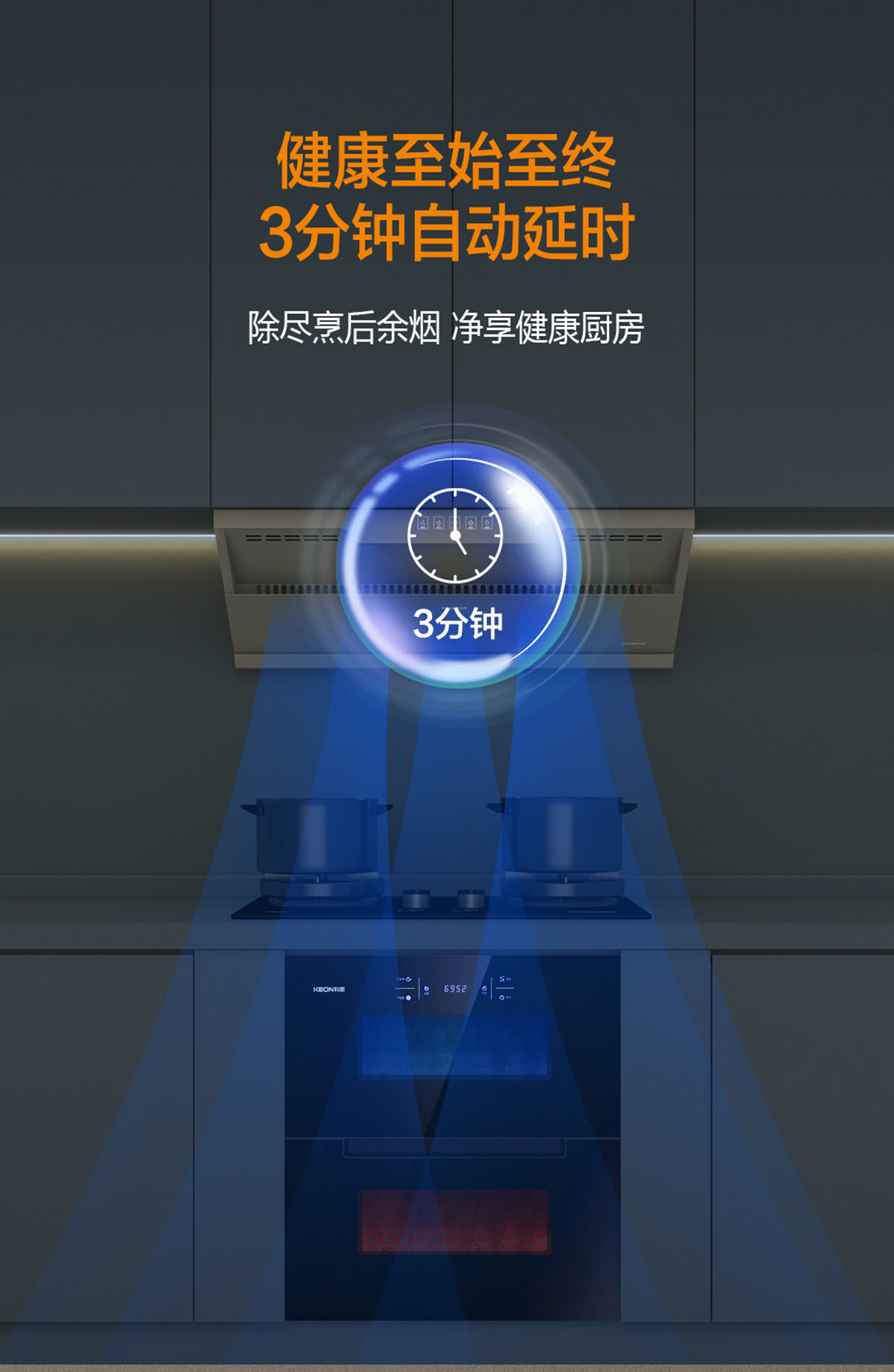 - 健康至始至終,3分鐘自動(dòng)延時(shí),除盡烹后余煙