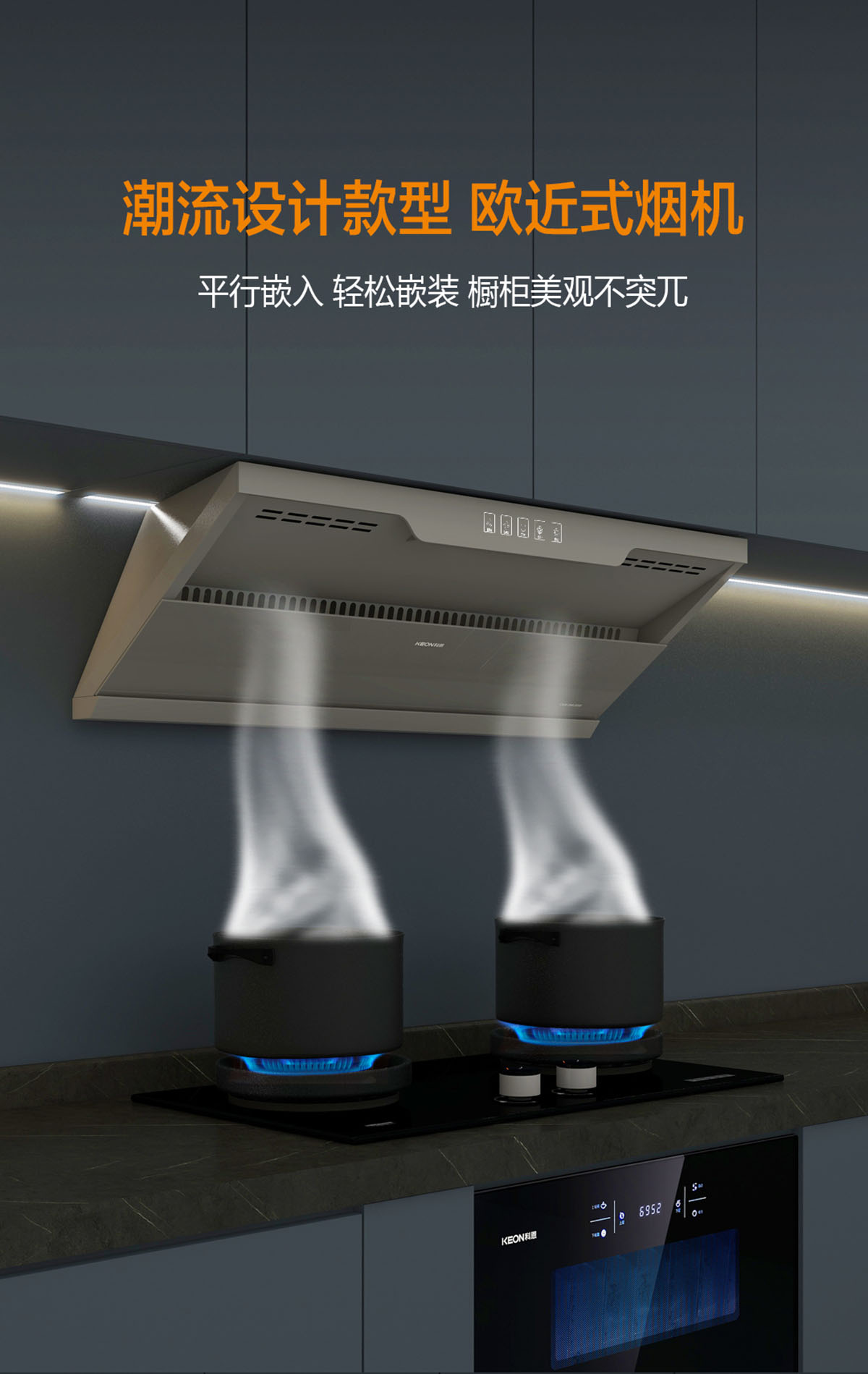 - 歐近式煙機(jī),平行嵌入,輕松嵌裝,櫥柜美觀不突兀