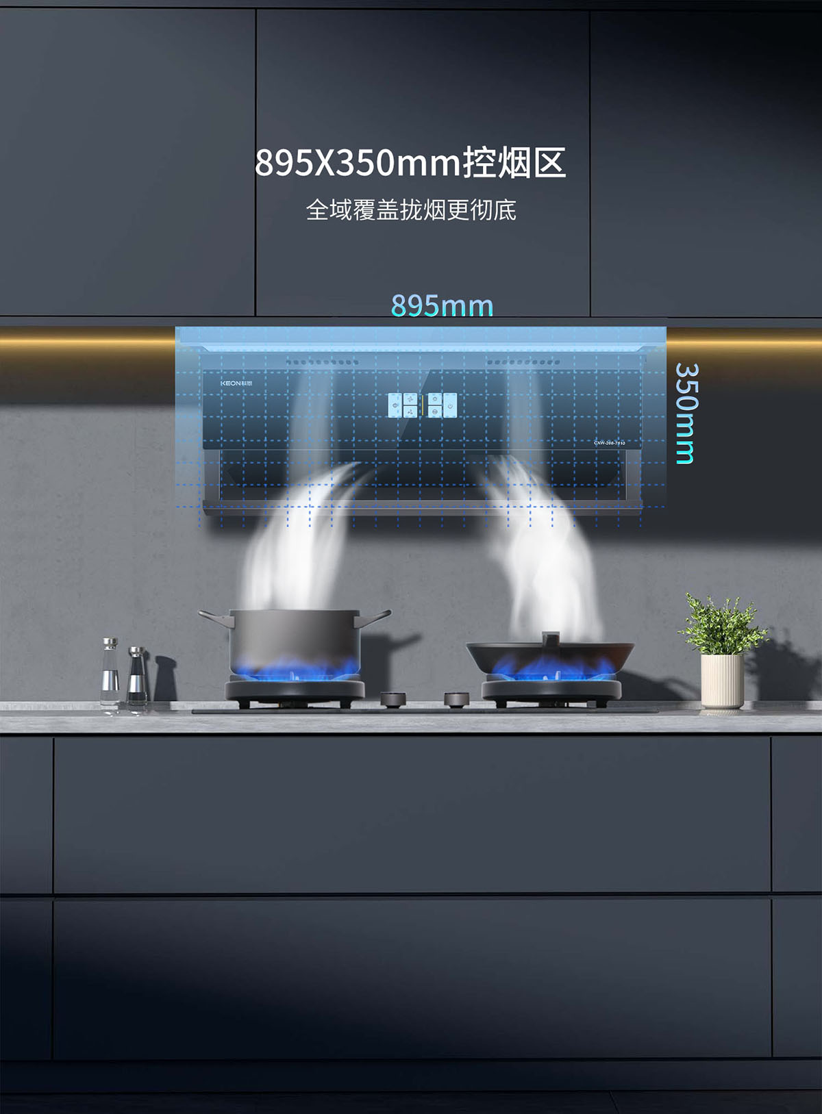 - 895X350mm控?zé)焻^(qū),全域覆蓋攏煙更徹底