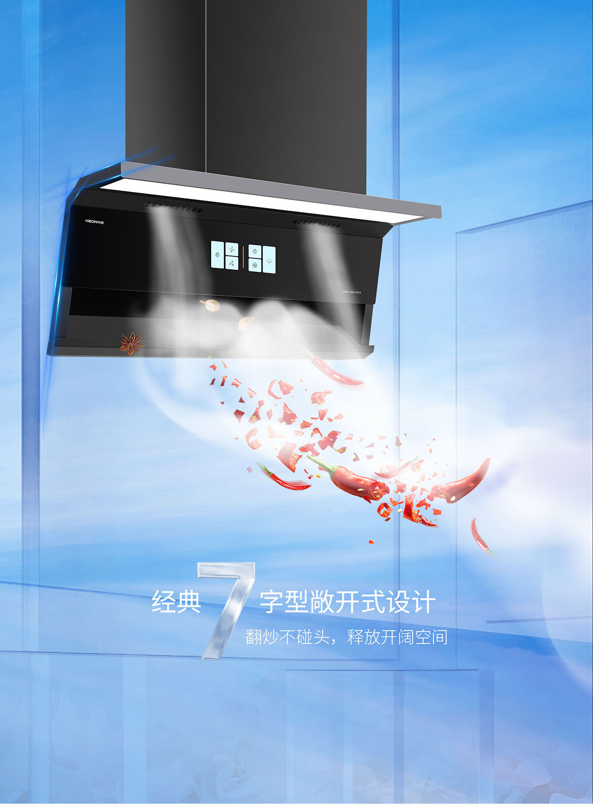 - 經(jīng)典7字型敞開式設(shè)計(jì),釋放空間,翻炒不碰頭