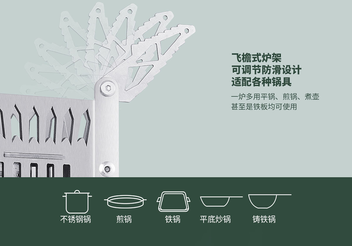 - 飛檐式可調(diào)節(jié)防滑鍋架,適配各種鍋具