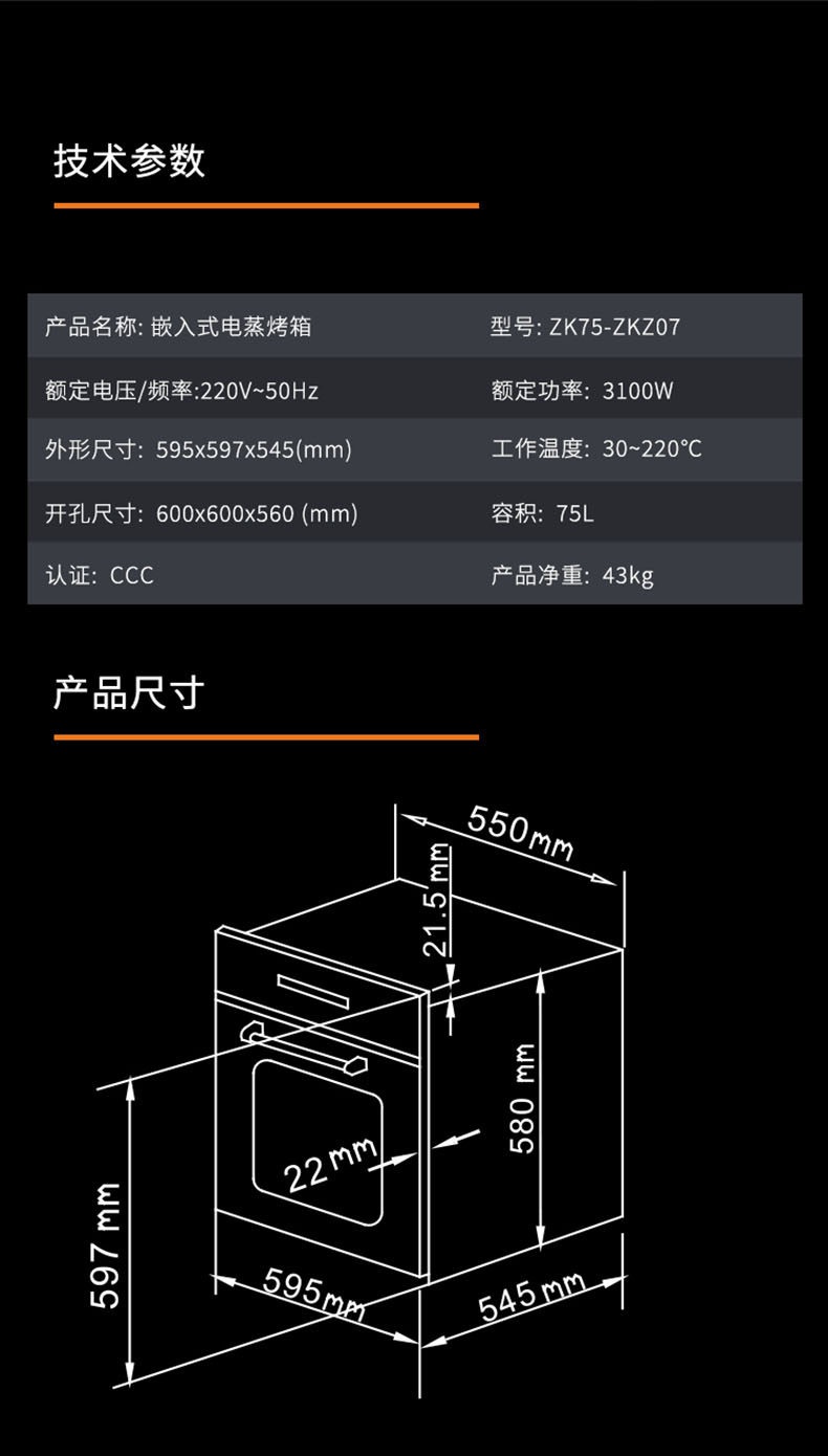外形尺寸:595x597x545(mm)