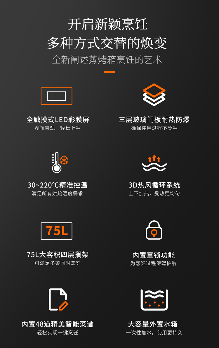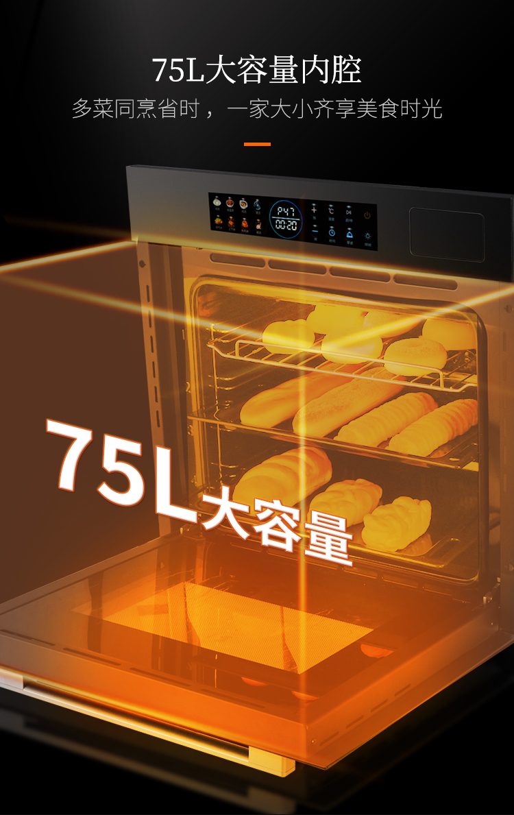 • 75L大容量,可滿足多菜同時烹飪
