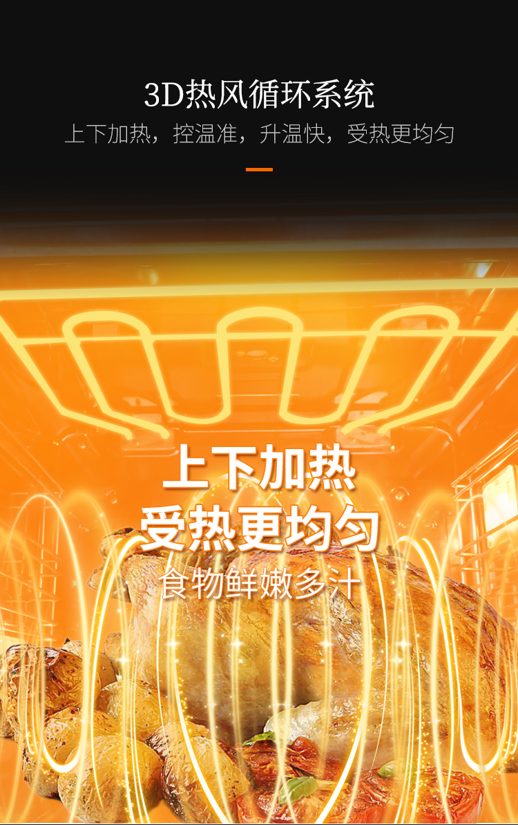• 3D熱風循環系統,升溫快,受熱更均勻