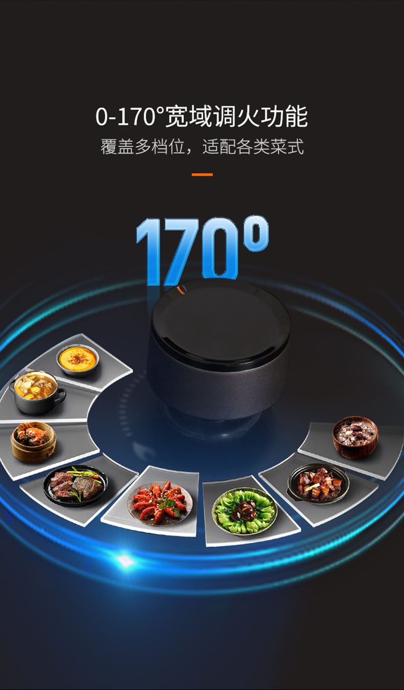 • 0-170°寬域調火功能,覆蓋多檔位,適配各類菜式