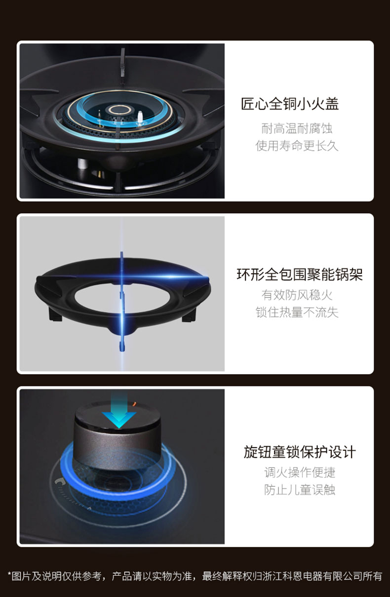• 全上進風設計,補氧充分,燃燒徹底,實現高效節能烹飪