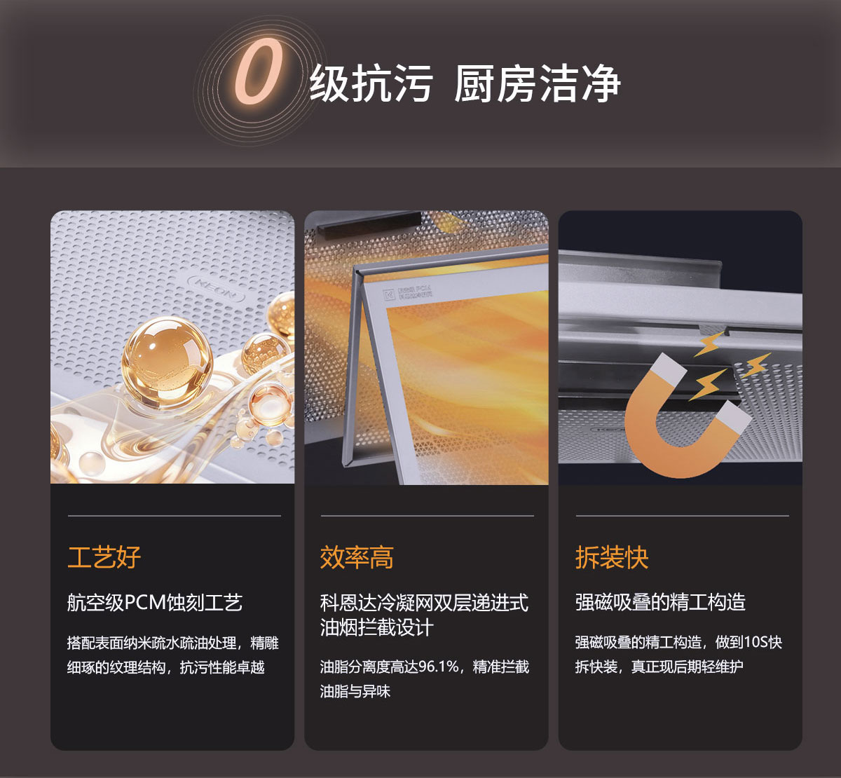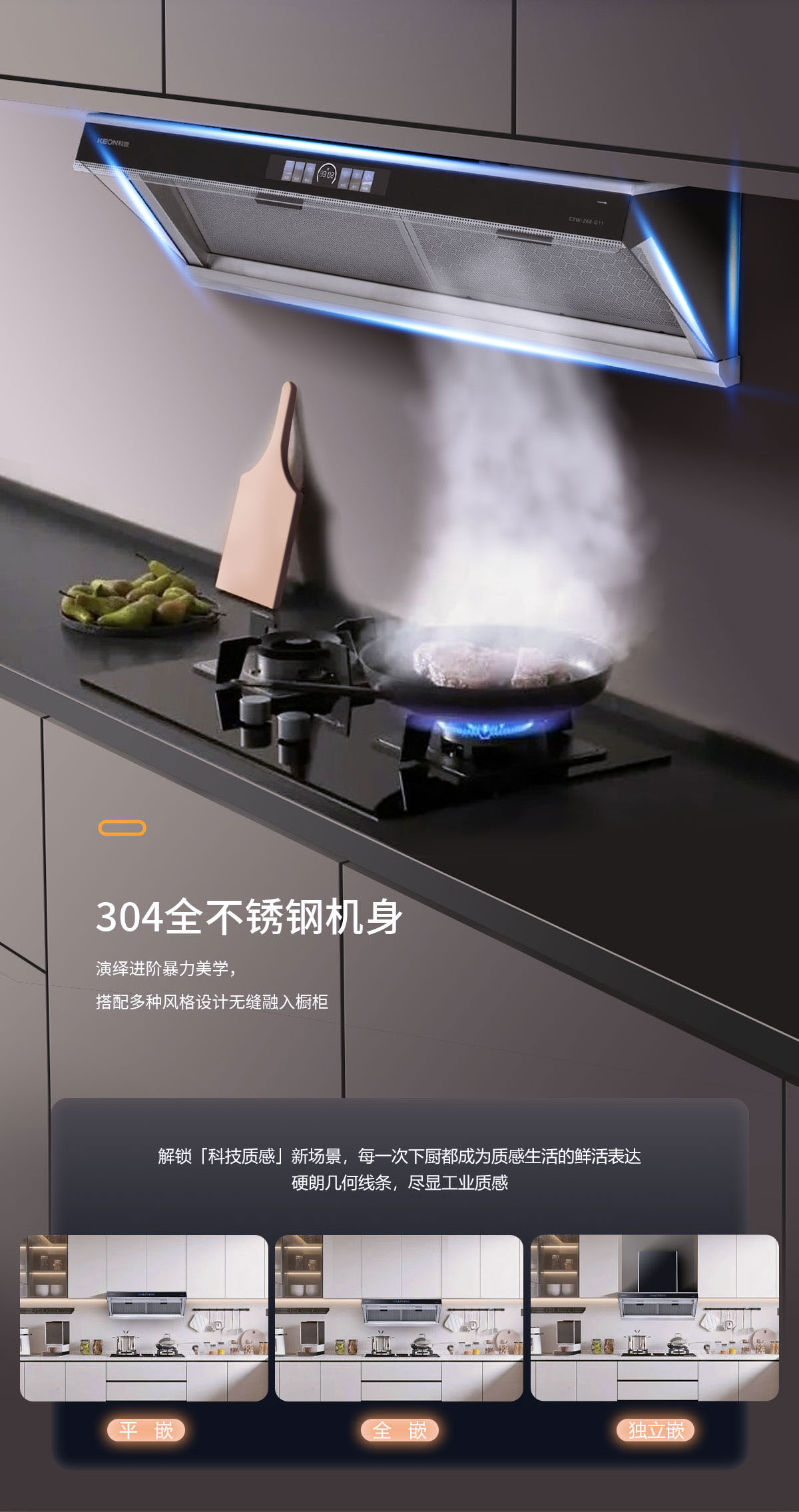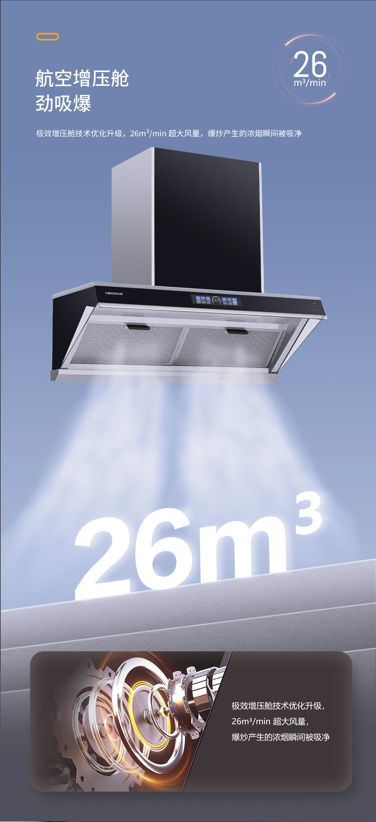 極效增壓艙,26m³/min大風量,爆炒濃煙一吸而凈