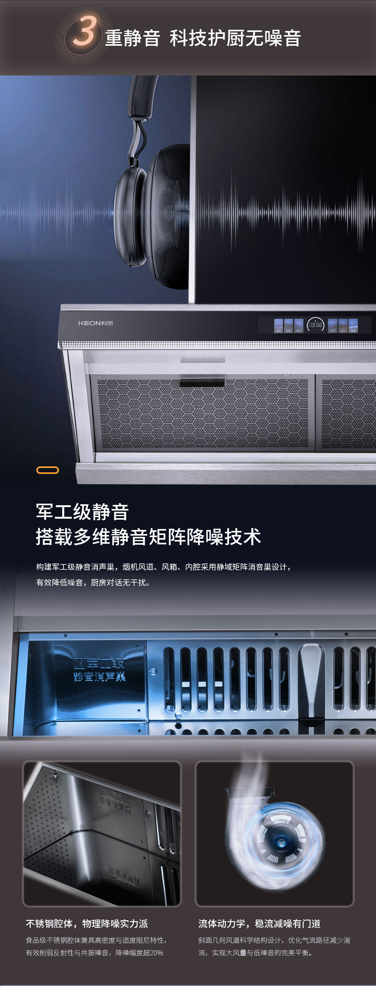 軍工級靜音消聲巢,多維靜音矩陣降噪,靜享烹飪