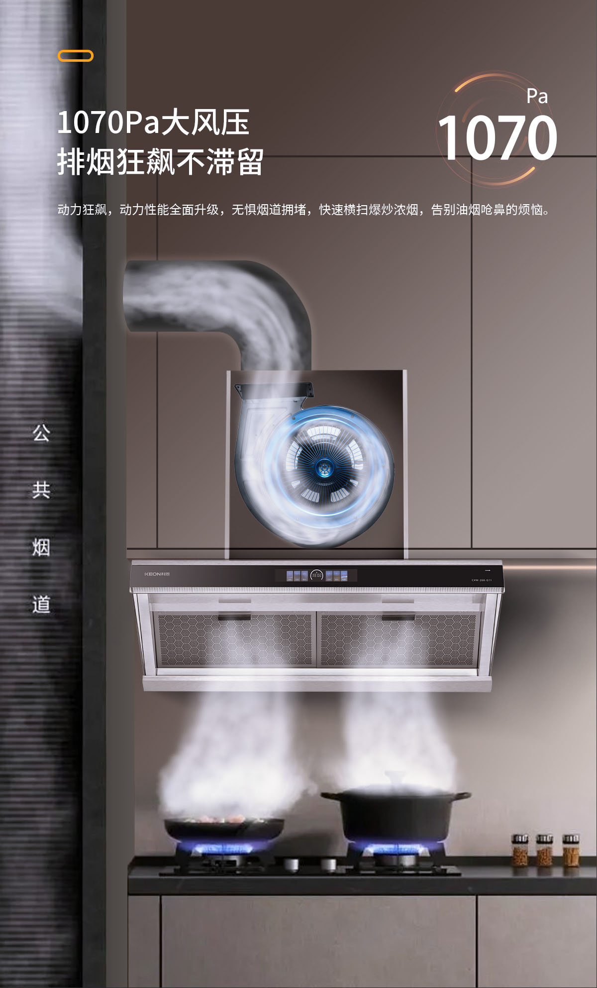 智能變頻巡航,無懼公共煙道烹飪高峰,拒絕油煙倒灌
