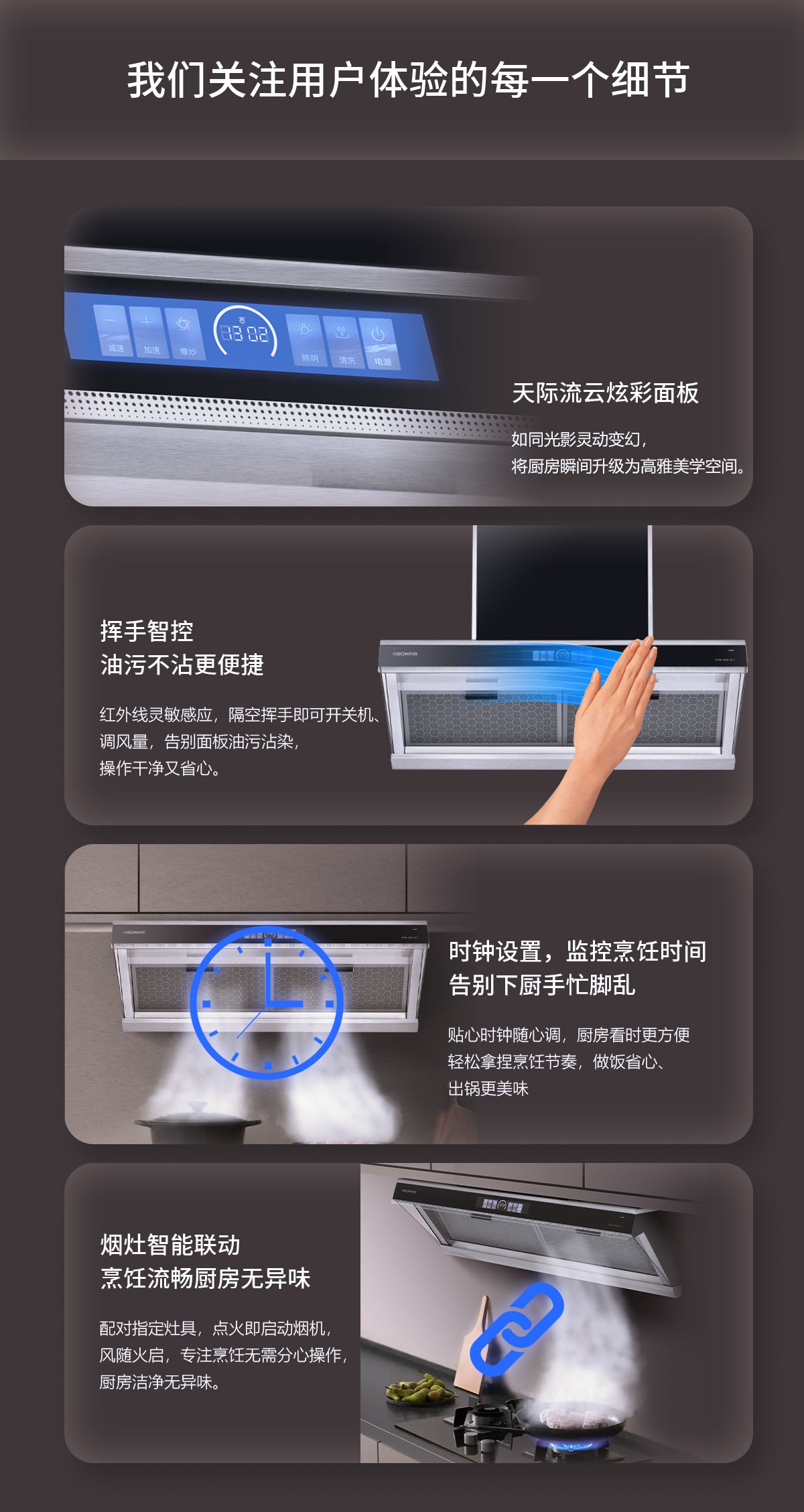 揮手智控,油污不沾更便捷,操作干凈又省心