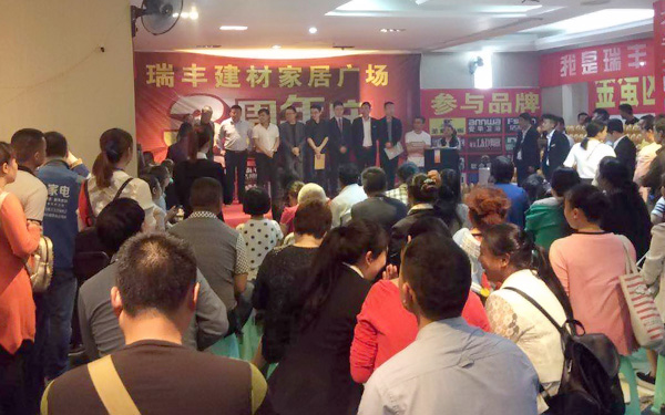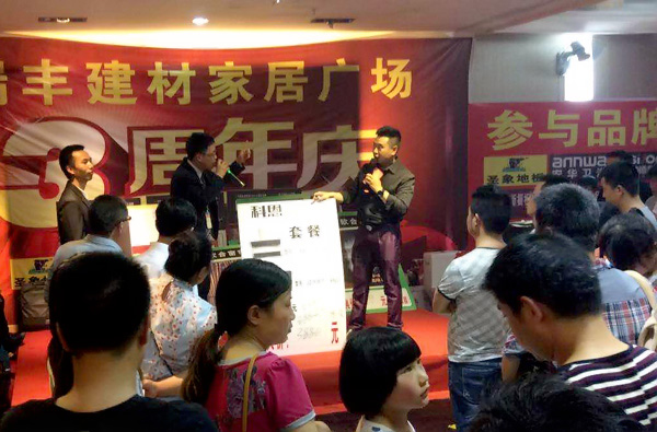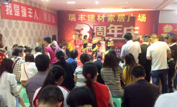 周年慶活動現場,大批業主聚集在瑞豐建材家居廣場,共同慶祝瑞豐建材3周年的生日。而瑞豐建材為了回饋廣大業主的厚愛,聯合全場商家為大家了準備了精美的禮品與超值的優惠。